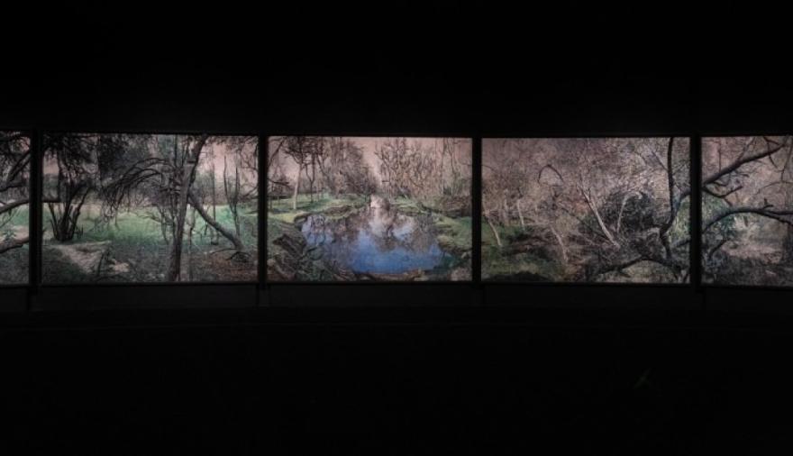 La instalación configura un paisaje imponente de 45 metros lineales distribuidos en 15 paneles de 3x2 metros. Realizada en plastilina —el material característico del Grupo Mondongo—, la pieza surge de un viaje de los artistas a Entre Ríos, donde se sintieron impactados por la naturaleza cruda de la región y sus inundaciones. La obra es al mismo tiempo un inventario de todas las posibilidades matéricas de la plastilina exploradas por los artistas y una reflexión sobre el género paisajístico.