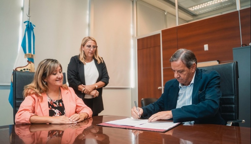 La ministra de Educación Silvia Fuentes y el apoderado de Glencore Pachon S.A.Jorge Sausset, rubricaron un convenio marco de asistencia y cooperación.